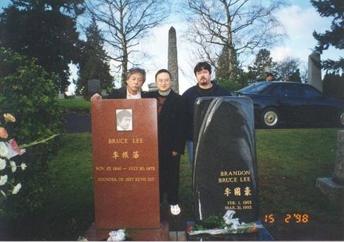 Our Chairman and Mr. Taky Kimura took this picture in front of the tombstones of Bruce and Brandon Lee