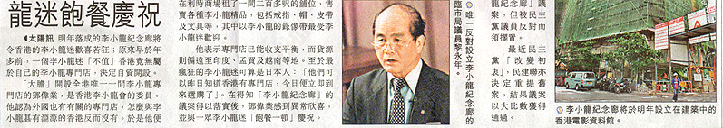 News report on the approval of setting up a "Bruce Lee Memorial Gallery" in Hong Kong